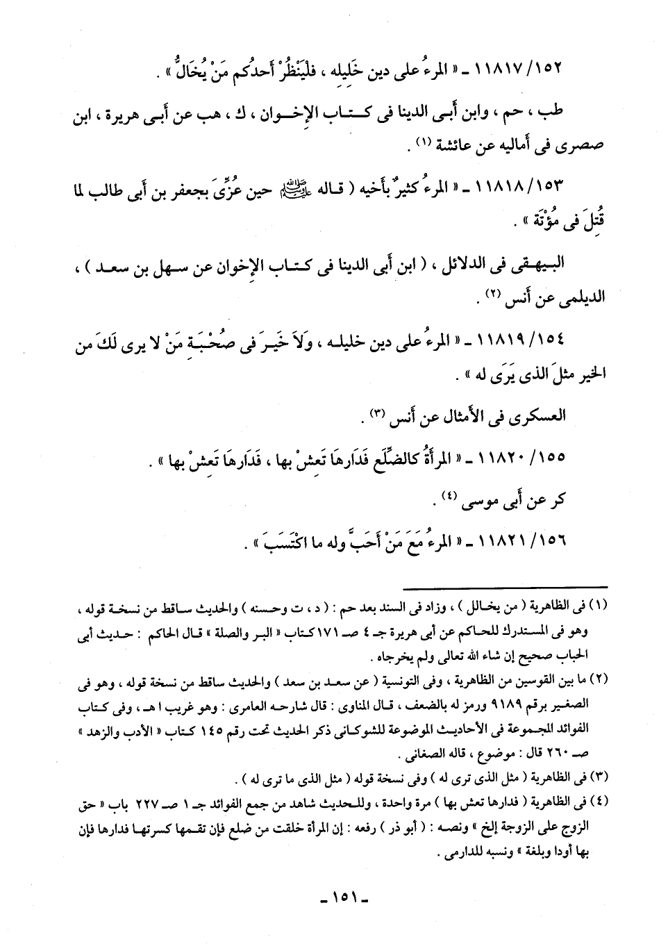 152/ 11817 - "المرءُ على دين خَلِيلِه، فليَنْظُرْ أحدُكم مَنْ يُخَالُّ".