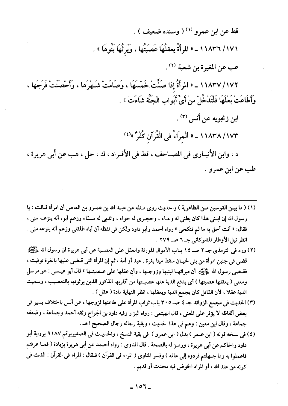 171/ 11836 - "المرأةُ يعقلُهَا عَصَبُتها، وَيَرِثُهَا بَنُوهَا".