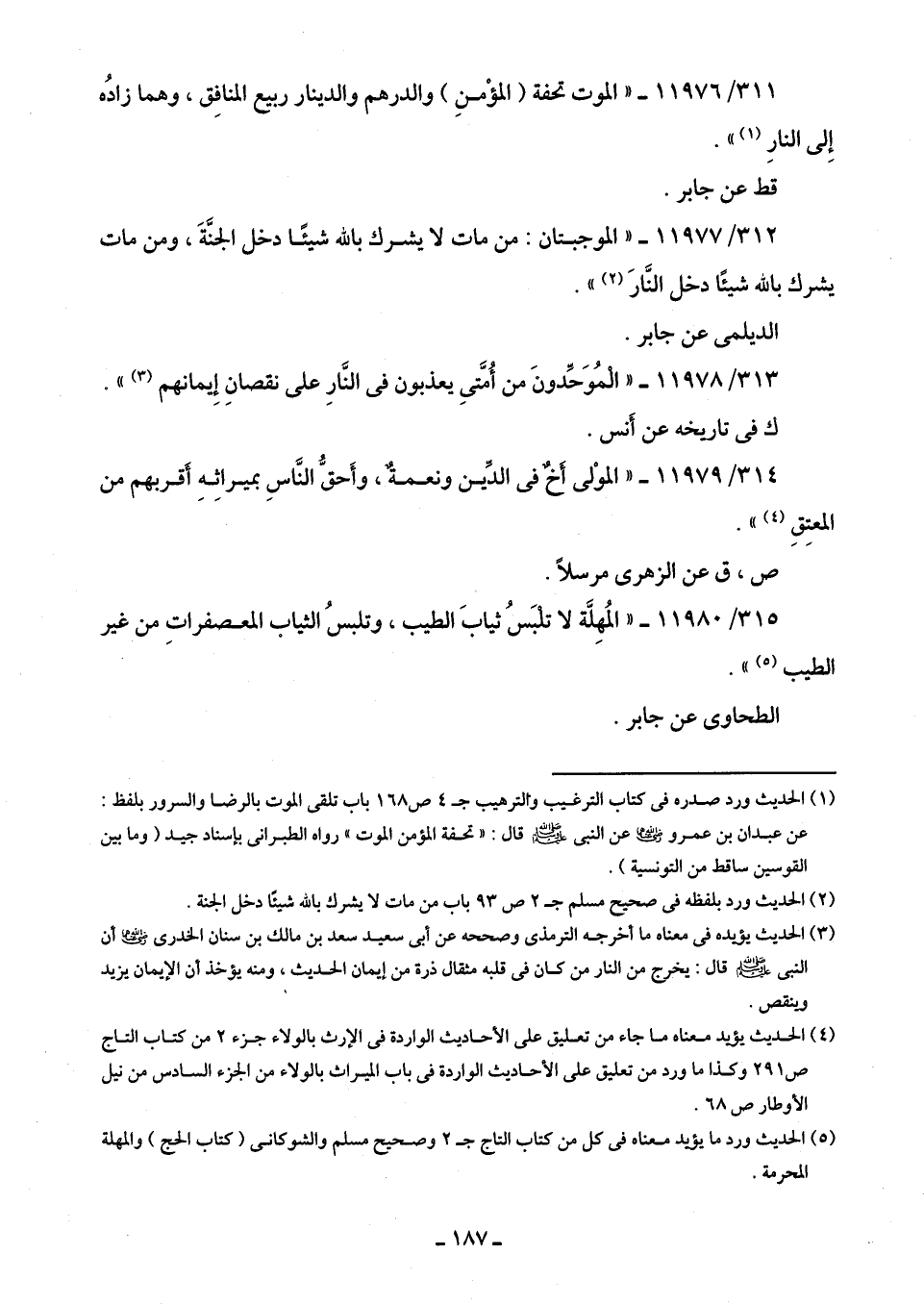 (¬4) الحديث يؤيد معناه ما جاء من تعليق على الأحاديث الواردة في الإرث بالولاء جزء 2 من كتاب التاج ص 291 وكذا ما ورد من تعليق علي الأحاديث الواردة في باب الميراث بالولاء من الجزء السادس من نيل الأوطار ص 68.