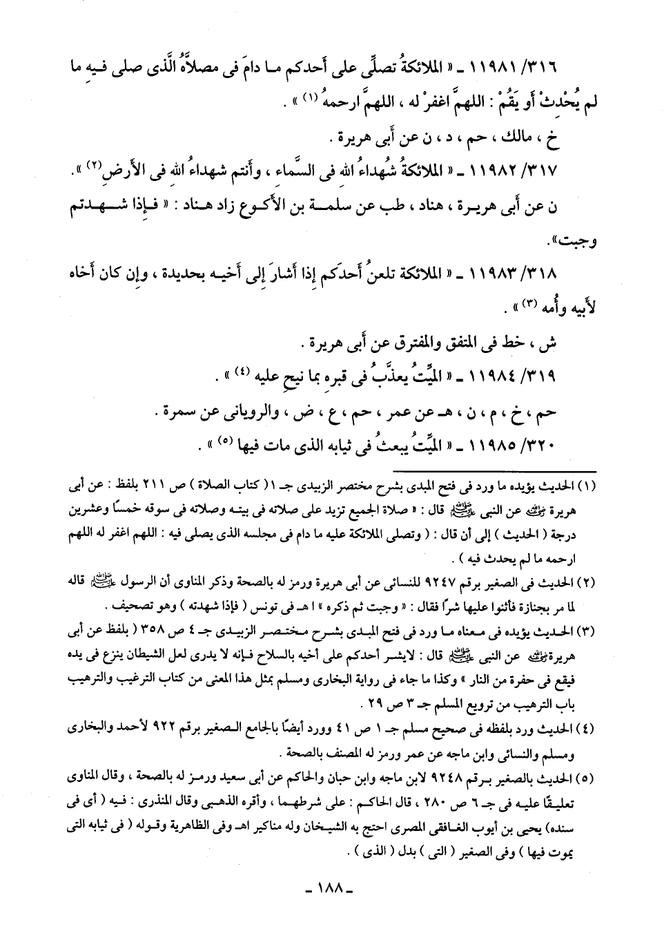 317/ 11982 - "الملائكةُ شُهداءُ اللهِ في السَّماءِ، وأنتم شهداءُ اللهِ في الأرضِ (¬2) ".
