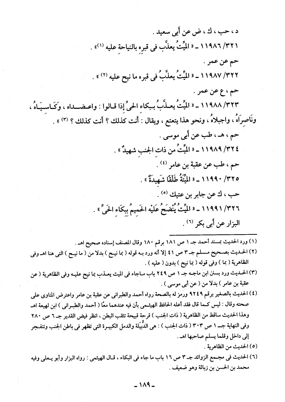 321/ 11986 - "الميِّتُ يعذَّب في قبرِهِ بالنياحةِ عليه (¬1) ".
