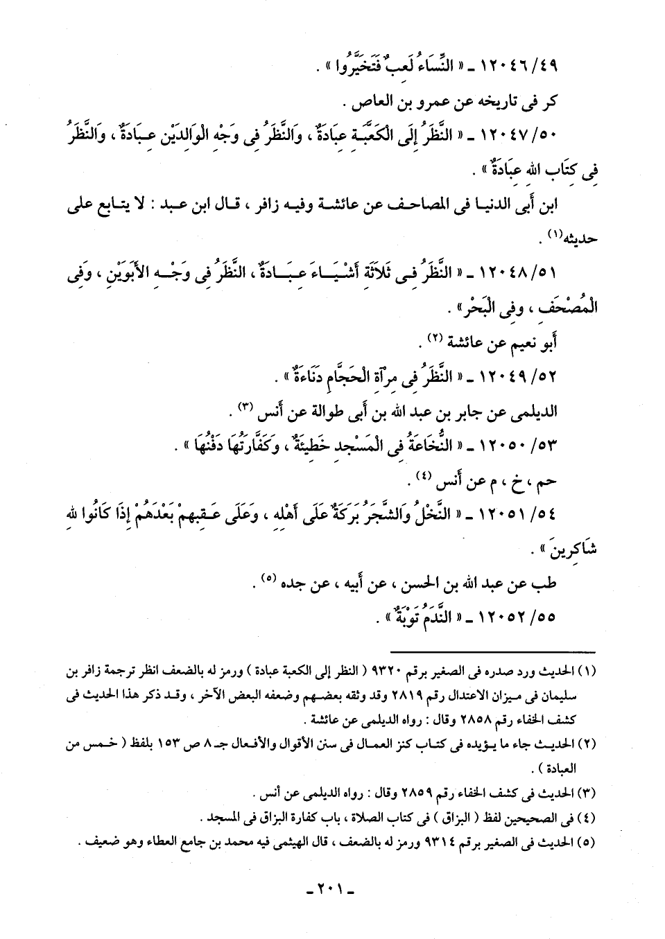 50/ 12047 - "النَّظَرُ إِلَى الْكَعَّبَةِ عِبَادَةٌ، وَالنَّظَرُ فِي وَجْهِ الْوَالِدَين عِبَادَةٌ، وَالنَّظَرُ فِي كِتَاب اللهِ عِبَادَةٌ".