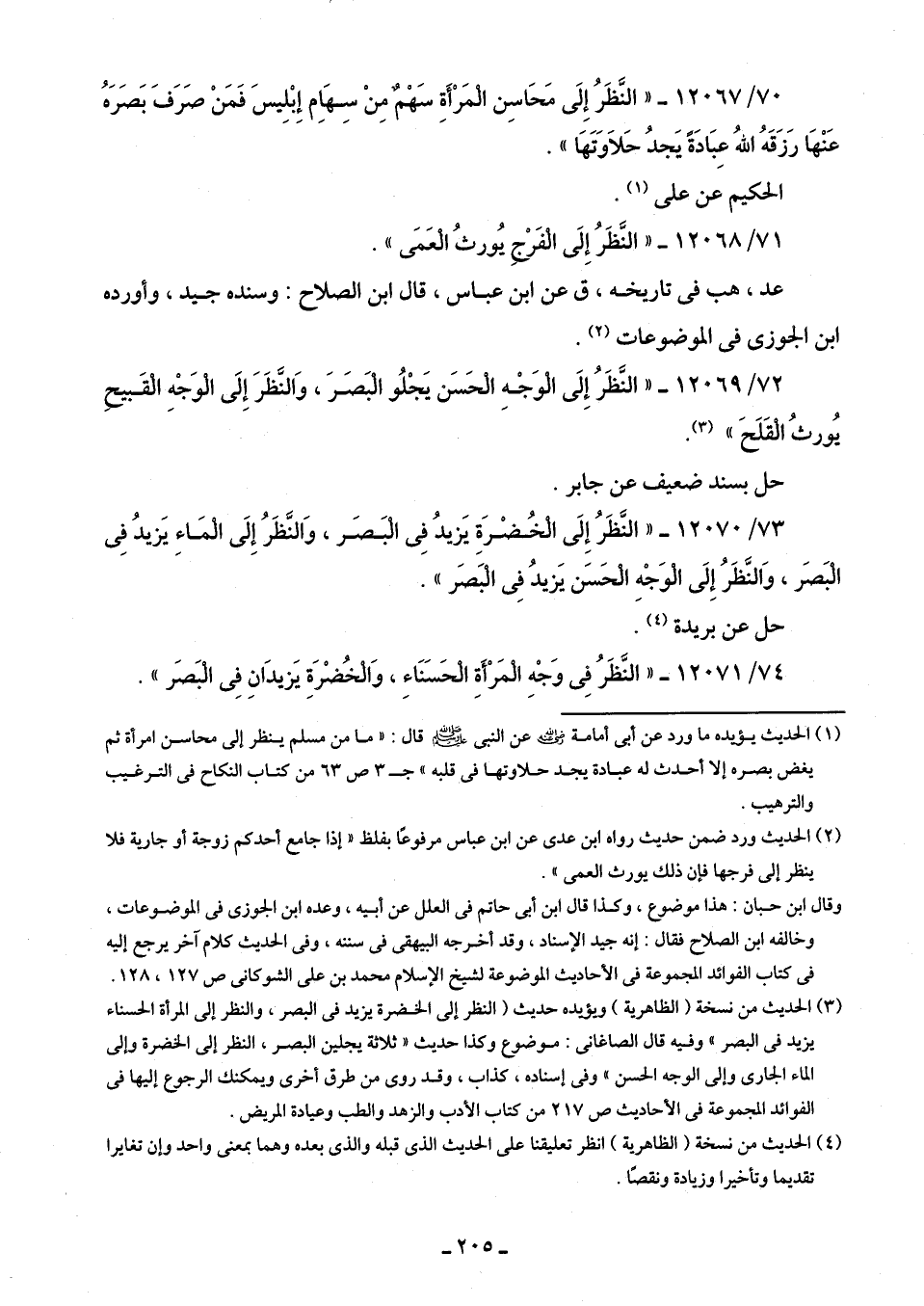 72/ 12069 - "النَّظَرُ إِلَى الْوَجْه الْحَسَن يَجْلُو الْبَصَرَ، وَالنَّظَرَ إِلَى الْوَجْهِ الْقَبيح يُورثُ الْقَلَحَ" (¬3).