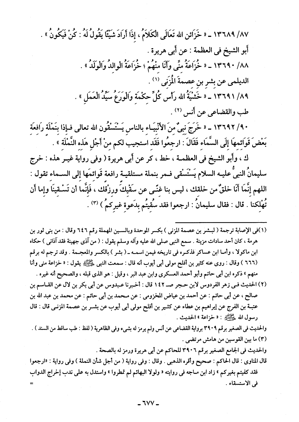 87/ 13689 - "خَزَائن اللَّه تَعَالَى الْكَلَامُ، إِذَا أَرَادَ شَيْئًا يَقُولُ لَهُ: كُنْ فَيَكُونُ".