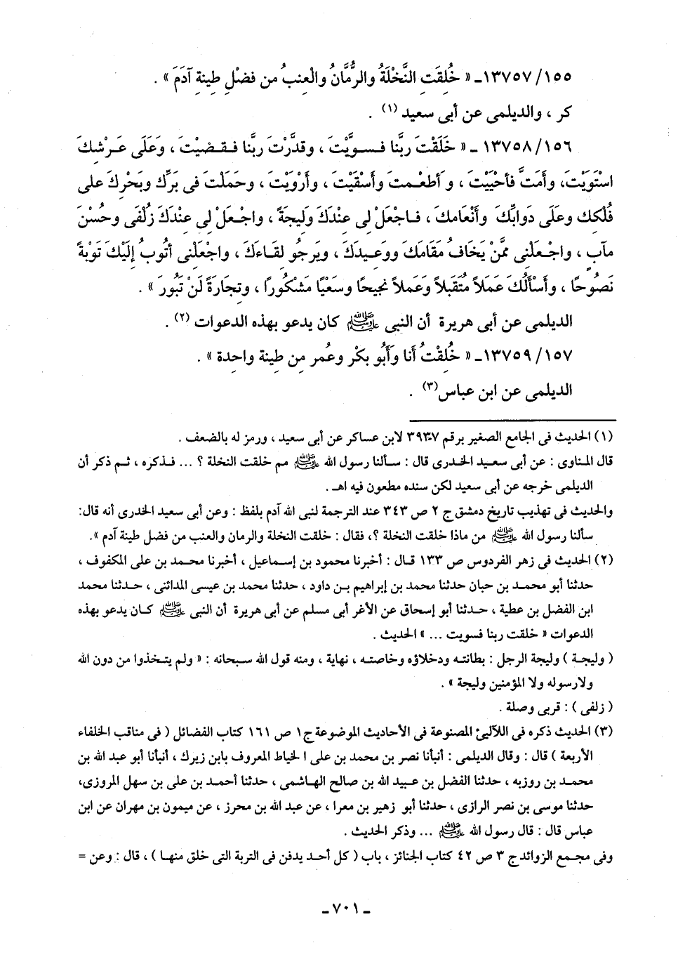 155/ 13757 - "خُلِقَتِ النَّخْلَةُ والرُّمَّانُ والعِنبُ من فضْلِ طِينةِ آدَمَ".