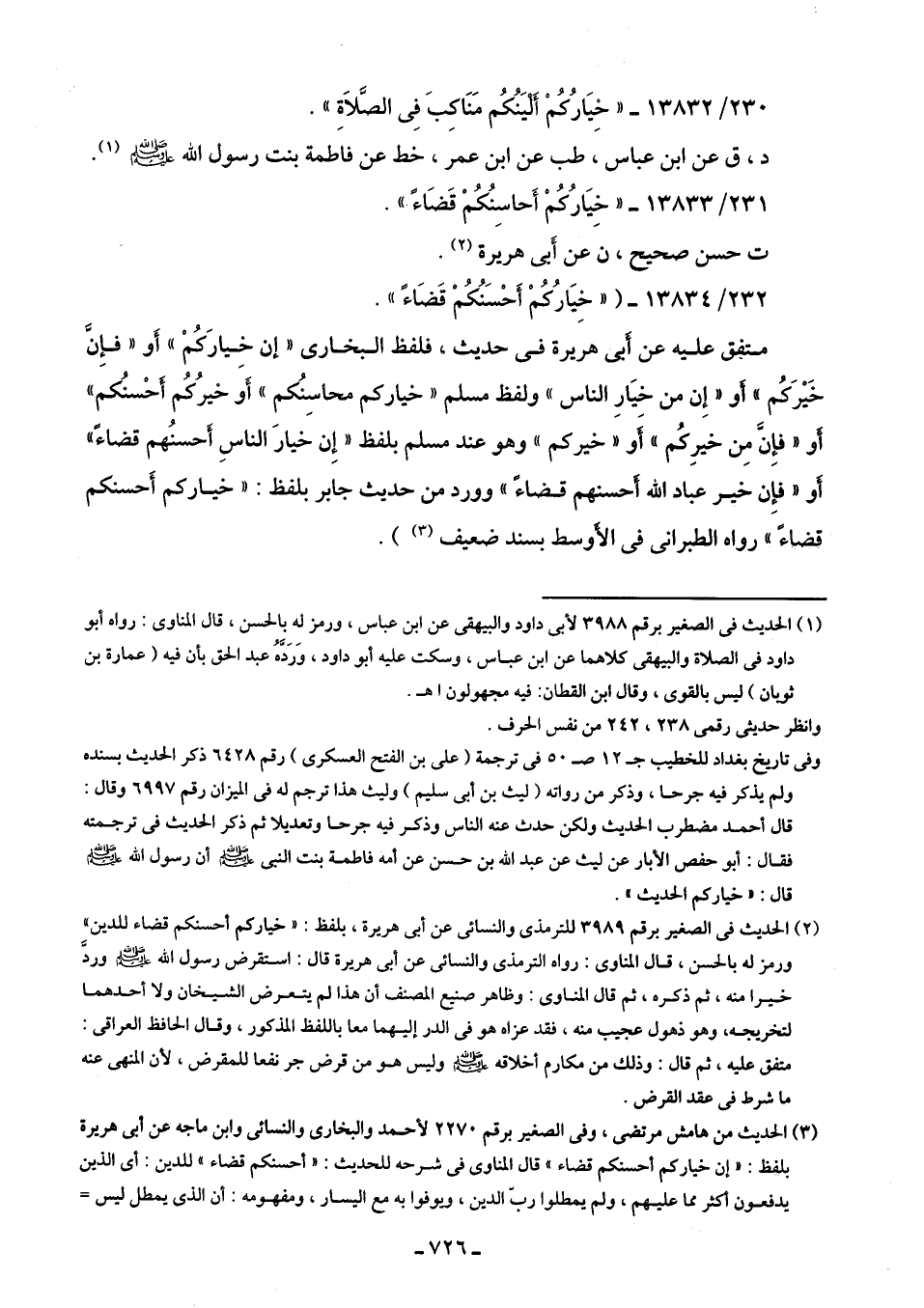 231/ 13833 - "خِيَارُكُمْ أَحاسِنُكُمْ قَضَاءً".