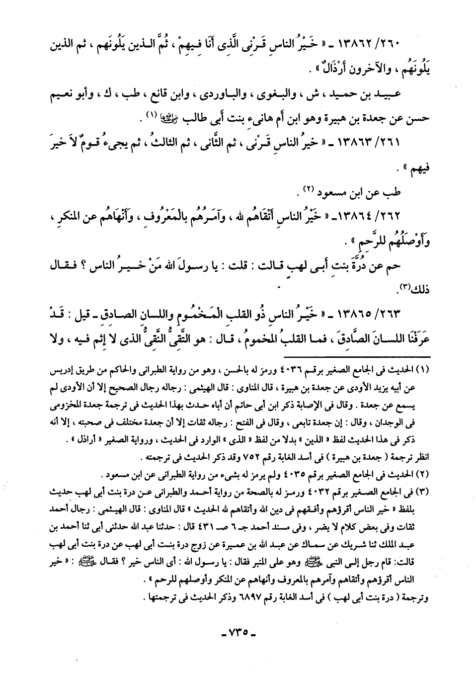 260/ 13862 - "خَيْرُ النَّاسِ قَرْنى الَّذى أَنَا فيهِمْ، ثُمَّ الذين يَلُونَهم، ثم الذين يَلُونَهُم، والآخرون أَرْذَالٌ".