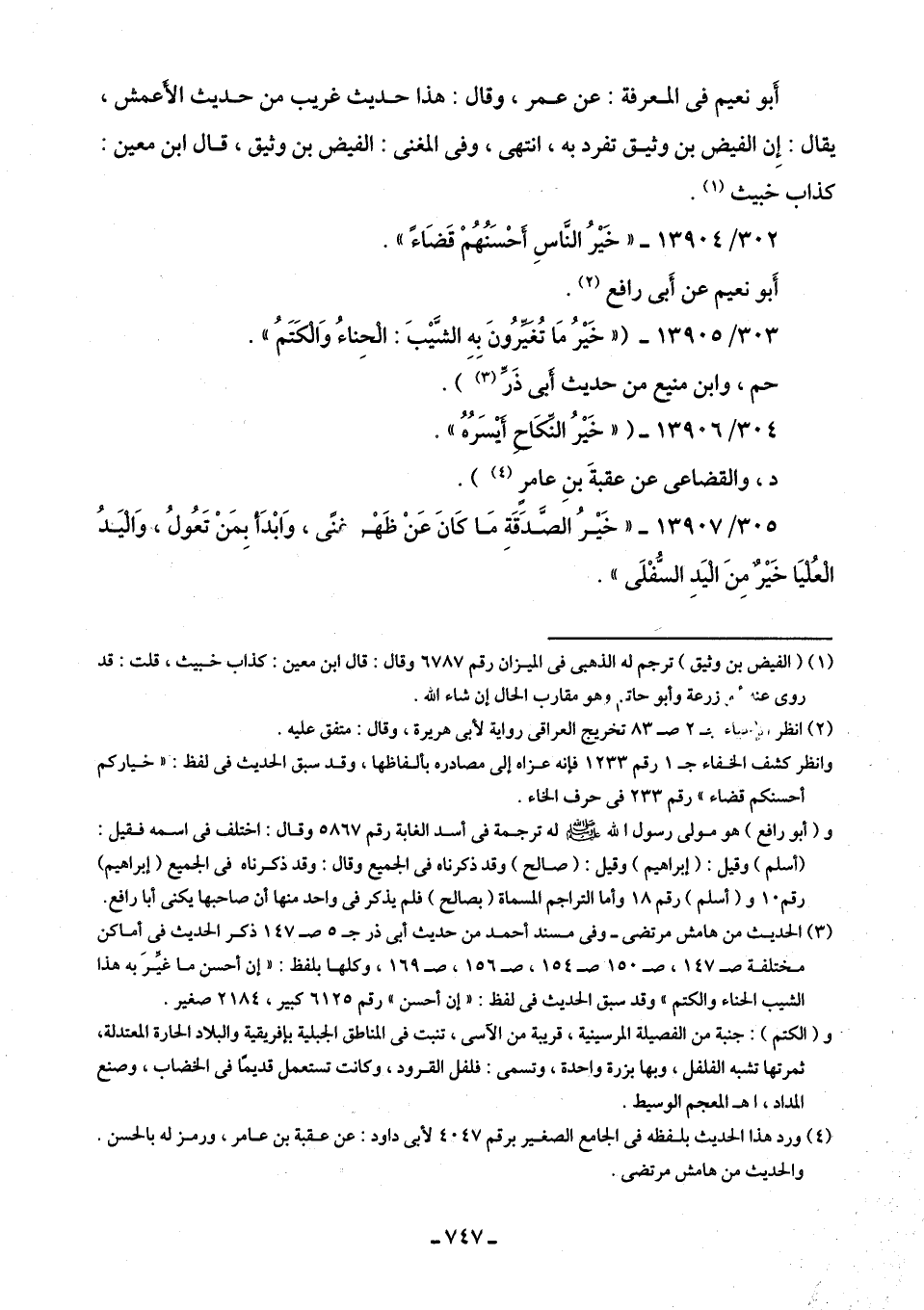 (¬3) الحديث من هامش مرتضى -وفى مسند أحمد من حديث أَبى ذر جـ 5 ص 147 ذكر الحديث في أماكن مختلفة ص 147، ص 150 ص 154، ص 156، ص 169، وكلها بلفظ: "إن أحسن ما غيِّرَ به هذا الشيب الحناء والكتم" وقد سبق الحديث في لفظ: "إن أحسن" رقم 6125 كبير، 2184 صغير.