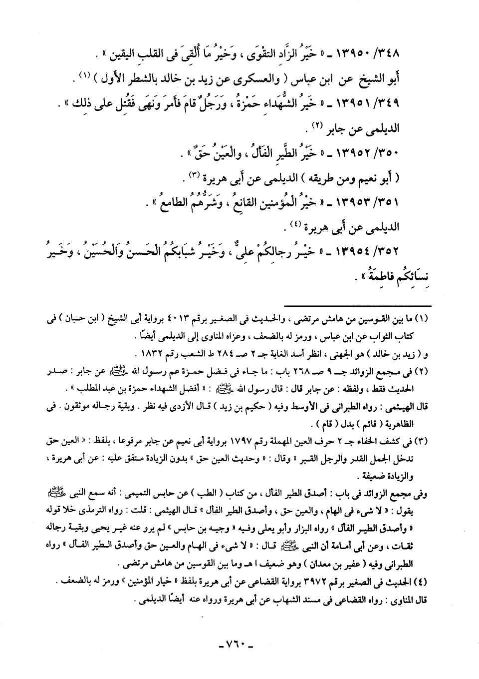 (¬4) الحديث في الصغير برقم 3972 برواية القضاعى عن أَبى هريرة بلفظ "خيار المؤمنين" ورمز له بالضعف.