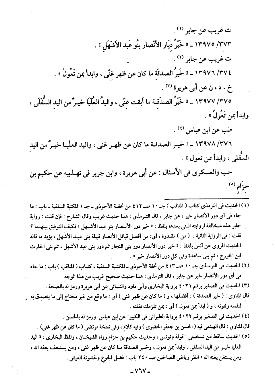 375/ 13977 - "خَيْرُ الصَّدَقة ما أَبقت غنًى، واليدُ العُليَا خَيْرٌ من اليدِ السُّفْلَى، وابدأْ بمن تَعُولُ".