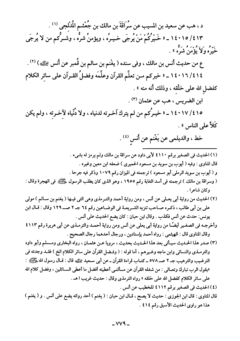 414/ 14016 - "خَيْرُكُم من تعلَّم القرآن وعلَّمَه وفضلُ القرآن على سائِر الكلام كفضلِ اللَّه على خلقِه، وذلك أَنه منه".