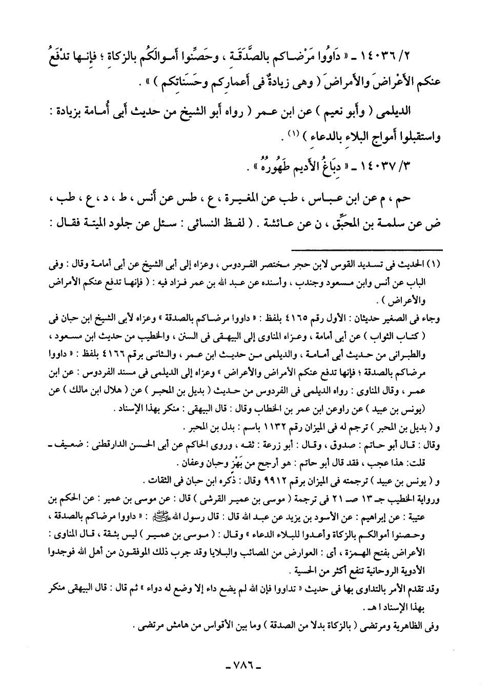 2/ 14036 - "دَاوُوا مَرْضاكم بالصَّدَقَةِ، وحَصِّنُوا أَموالَكُم بالزكاةِ؛ فَإِنَّها تدْفَعُ عنكم الأَعْراضَ والأمراضَ (وهى زيادةٌ في أَعمارِكم وحَسَنَاتِكم) ".