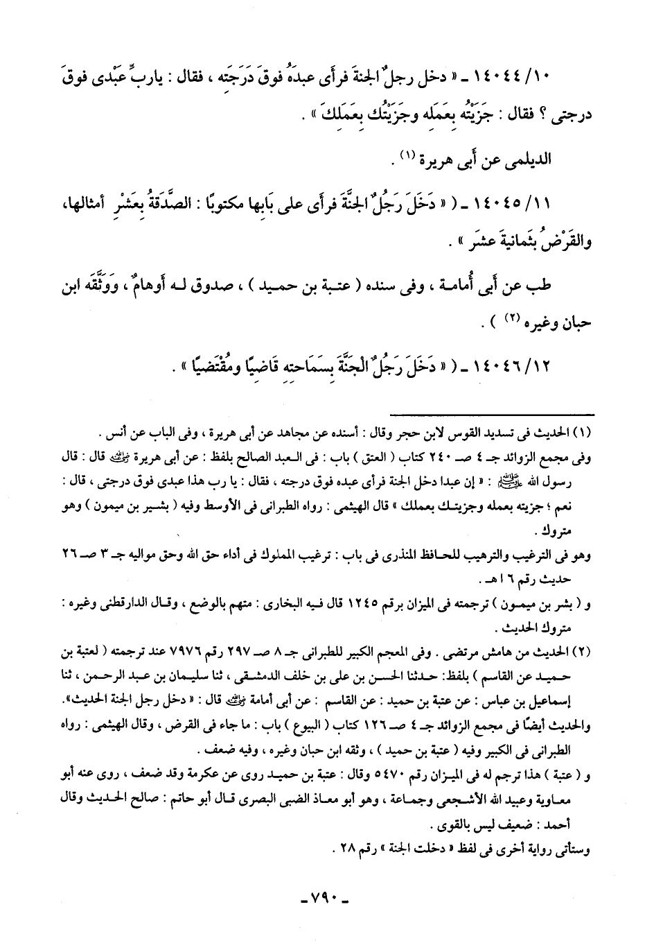 (¬2) الحديث من هامش مرتضى. وفى المعجم الكبير للطبرانى جـ 8 ص 297 رقم 7976 عند ترجمته (لعتبة بن حميد عن القاسم) بلفظ: حدثنا الحسن بن على بن خلف الدمشقى، ثنا سليمان بن عبد الرحمن، ثنا إسماعيل بن عباس: عن عتبة بن حميد: عن القاسم: عن أَبى أُمامة -رضي اللَّه عنه- قال: "دخل رجل الجنة الحديث".