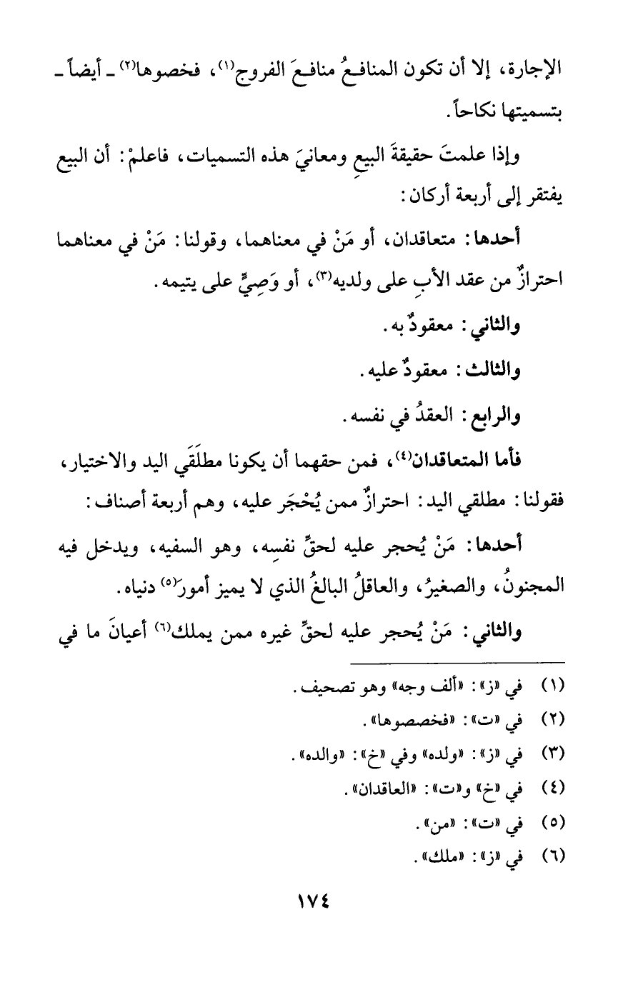 وإذا علمتَ حقيقةَ البيعِ ومعانيَ هذه التسميات، فاعلمْ: أن البيع يفتقر إلى أربعة أركان: