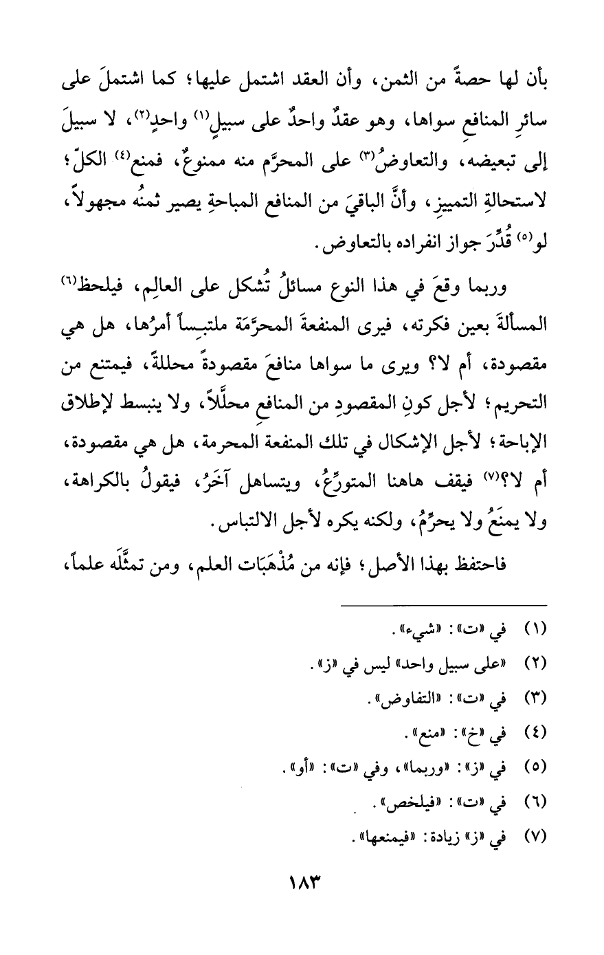 وربما وقعَ في هذا النوع مسائلُ تُشكل على العالِم، فيلحظ (¬6) المسألةَ بعين فكرته، فيرى المنفعةَ المحرَّمَة ملتبِسًا أمرُها، هل هي مقصودة، أم لا؟ ويرى ما سواها منافعَ مقصودةً محللةً، فيمتنع من التحريم؛ لأجل كونِ المقصودِ من المنافعِ محلَّلًا، ولا ينبسط لإطلاق الإباحة؛ لأجل الإشكال في تلك المنفعة المحرمة، هل هي مقصودة، أم لا؟ (¬7) فيقف هاهنا المتورِّعُ، ويتساهل آخَرُ، فيقولُ بالكراهة، ولا يمنعُ ولا يحرِّمُ، ولكنه يكره لأجل الالتباس.
