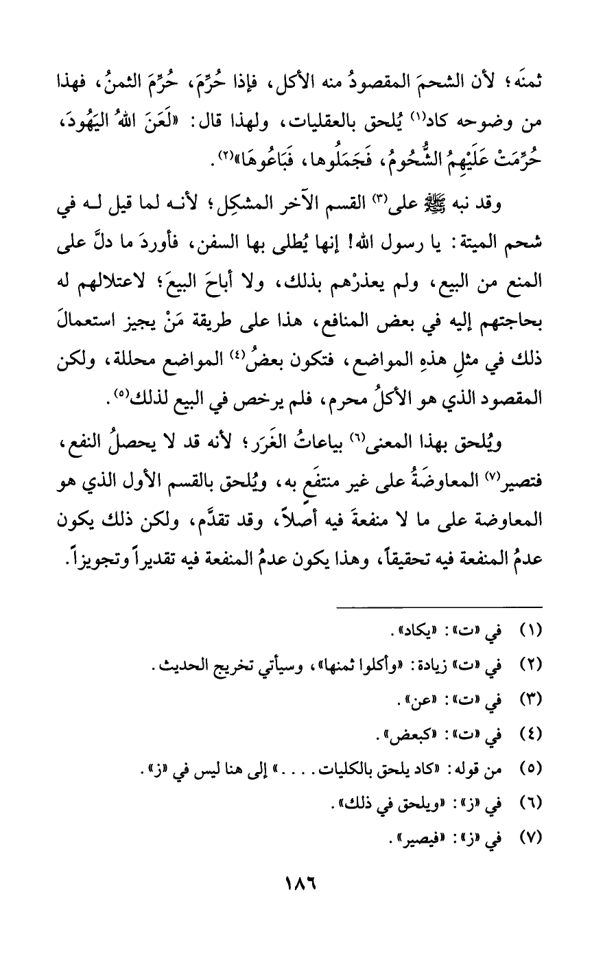 ثمنَه؛ لأن الشحمَ المقصودُ منه الأكل، فإذا حُرِّمَ، حُرِّمَ الثمنُ، فهذا من وضوحه كاد (¬1) يُلحق بالعقليات، ولهذا قال: "لَعَنَ اللَّهُ اليَهُودَ، حُرِّمَتْ عَلَيْهِمُ الشُّحُومُ، فَجَمَلُوها، فَبَاعُوهَا" (¬2).