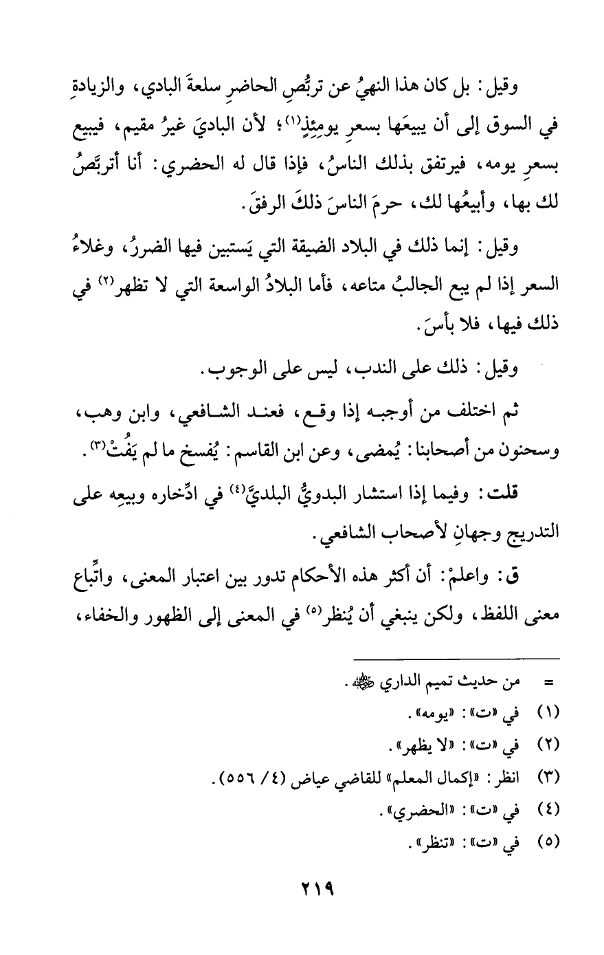 وقيل: بل كان هذا النهيُ عن تربُّصِ الحاضرِ سلعةَ البادي، والزيادةِ في السوق إلى أن يبيعَها بسعرِ يومِئِذٍ (¬1)؛ لأن الباديَ غيرُ مقيم، فيبيع بسعرِ يومه، فيرتفق بذلك الناسُ، فإذا قال له الحضري: أنا أتربَّصُ لك بها، وأبيعُها لك، حرمَ الناسَ ذلكَ الرفقَ.