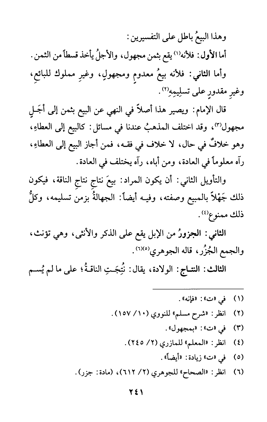 والتأويل الثاني: أن يكون المراد: بيعَ نتاجِ نتاجِ الناقة، فيكون ذلك جَهْلًا بالمبيع وصفته، وفيه أيضًا: الجهالةُ بزمن تسليمه، وكلُّ ذلك ممنوع (¬4).