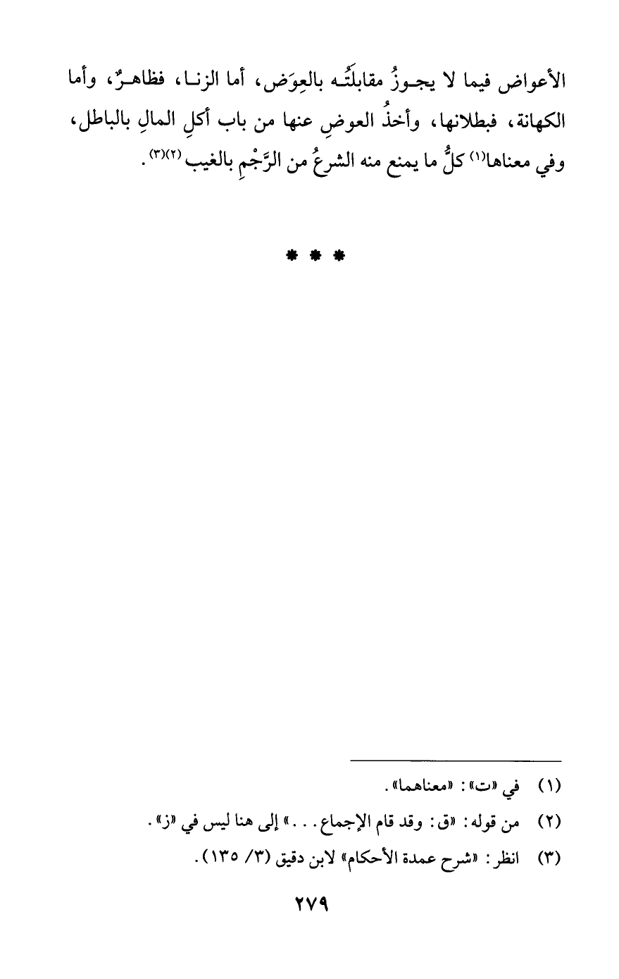 الأعواض فيما لا يجوزُ مقابلَتُه بالعِوَض، أما الزِّنا، فظاهرٌ، وأما الكهانة، فبطلانها، وأخذُ العوضِ عنها من باب أكلِ المالِ بالباطل، وفي معناها (¬1) كلُّ ما يمنع منه الشرعُ من الرَّجْمِ بالغيب (¬2) (¬3).