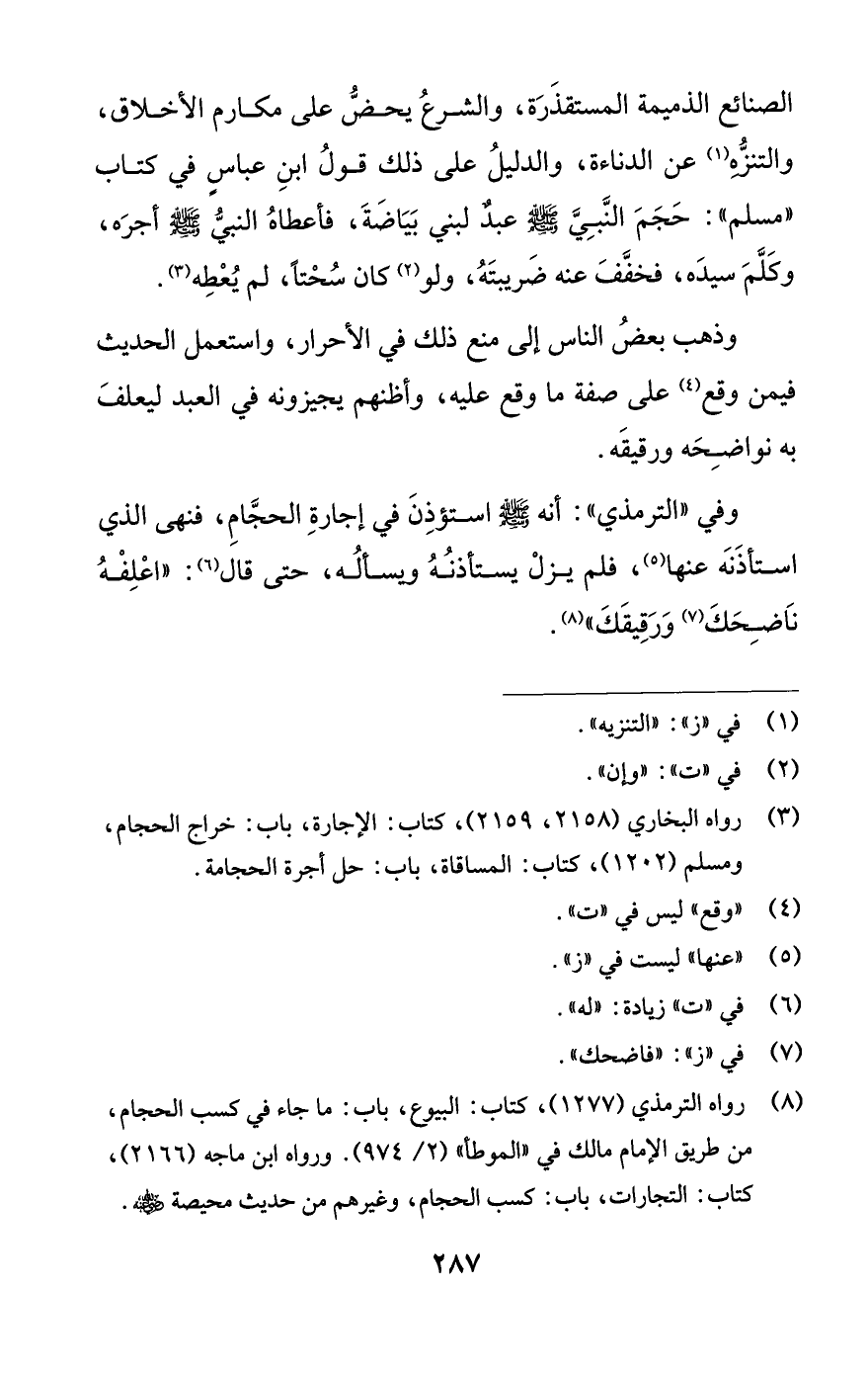 (¬8) رواه الترمذي (1277)، كتاب: البيوع، باب: ما جاء في كسب الحجام، من طريق الإمام مالك في "الموطأ" (2/ 974). ورواه ابن ماجة (2166)، كتاب: التجارات، باب: كسب الحجام، وغيرهم من حديث محيصة -رضي اللَّه عنه-.