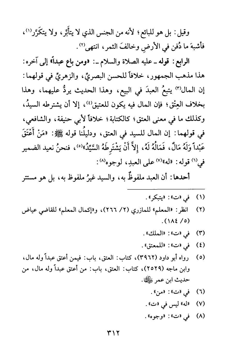 (¬5) رواه أبو داود (3962)، كتاب: العتق، باب: فيمن أعتق عبدًا وله مال، وابن ماجه (2529)، كتاب: العتق، باب: من أعتق عبدًا وله مال، من حديث ابن عمر -رضي اللَّه عنهما-.