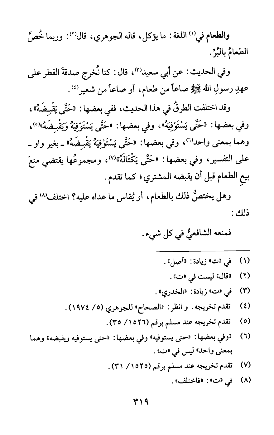(¬6) "وفي بعضها: "حتى يستوفيه" وفي بعضها: "حتى يستوفيه ويقبضه" وهما بمعنى واحد" ليس في "ت".