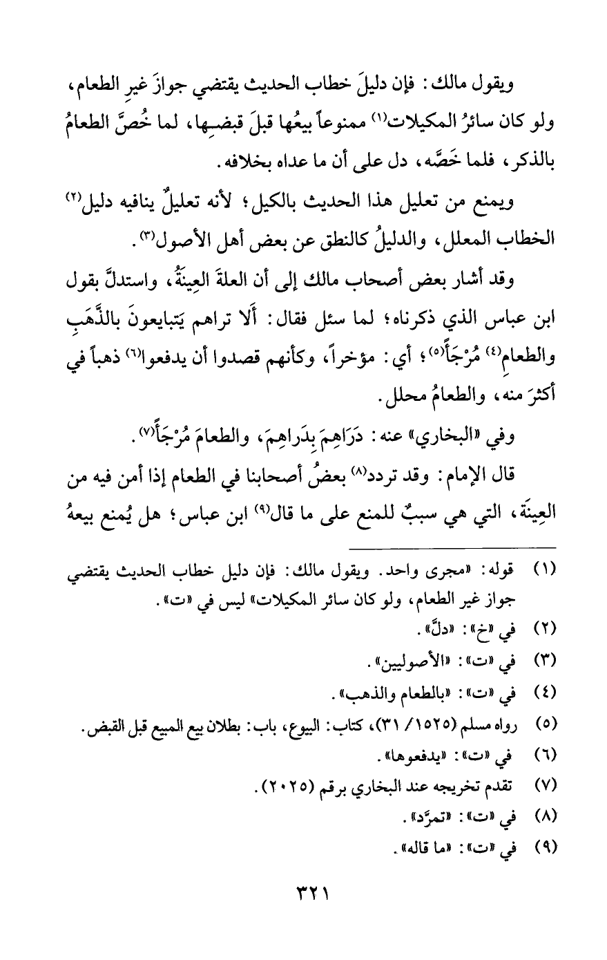 (¬1) قوله: "مجرى واحد. ويقول مالك: فإن دليل خطاب الحديث يقتضي جواز غير الطعام، ولو كان سائر المكيلات" ليس في "ت".