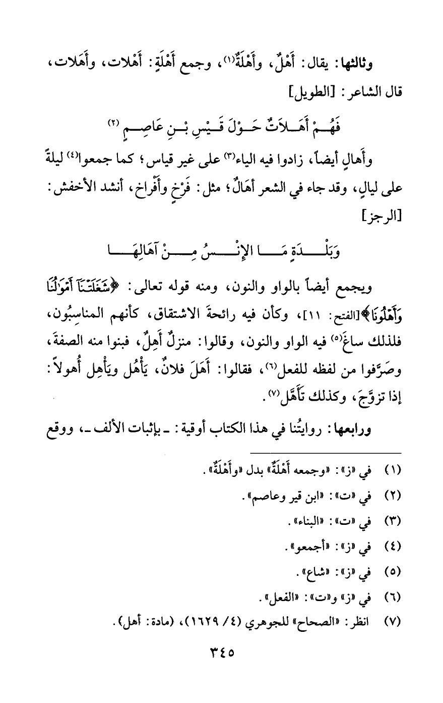 (¬7) انظر: "الصحاح" للجوهري (4/ 1629)، (مادة: أهل).