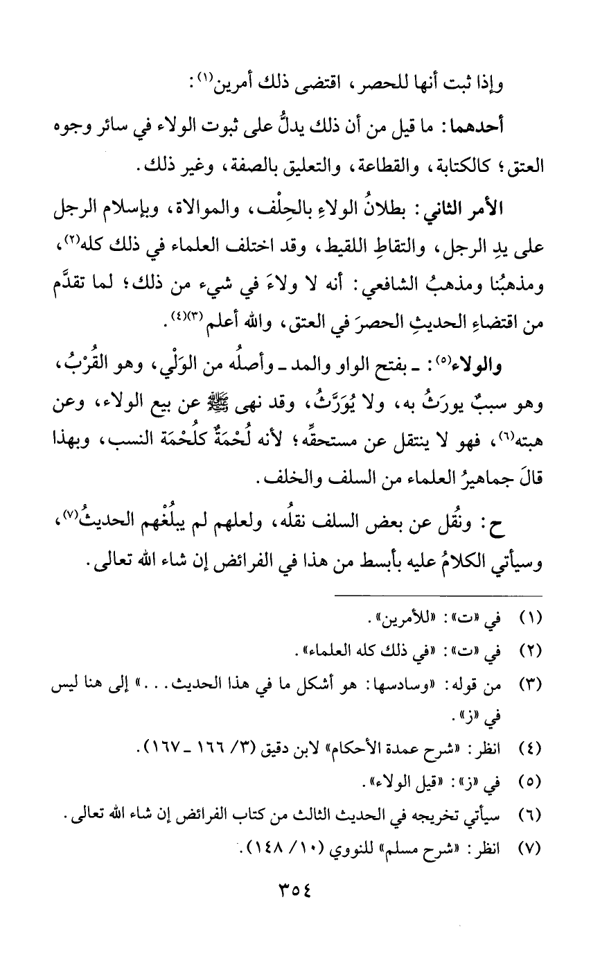 ح: ونُقل عن بعض السلف نقلُه، ولعلهم لم يبلُغْهم الحديثُ (¬7)، وسيأتي الكلامُ عليه بأبسط من هذا في الفرائض إن شاء اللَّه تعالى.
