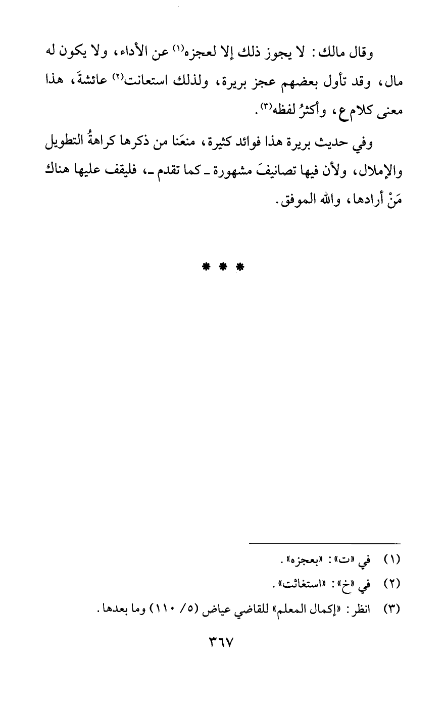 وفي حديث بريرة هذا فوائد كثيرة، منعَنا من ذكرها كراهةُ التطويل والإملال، ولأن فيها تصانيفَ مشهورة -كما تقدم-، فليقف عليها هناك مَنْ أرادها، واللَّه الموفق.