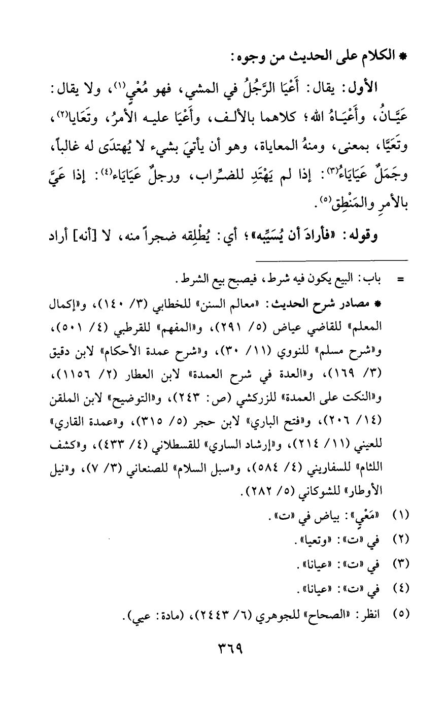 (¬5) انظر: "الصحاح" للجوهري (6/ 2443)، (مادة: عيي).