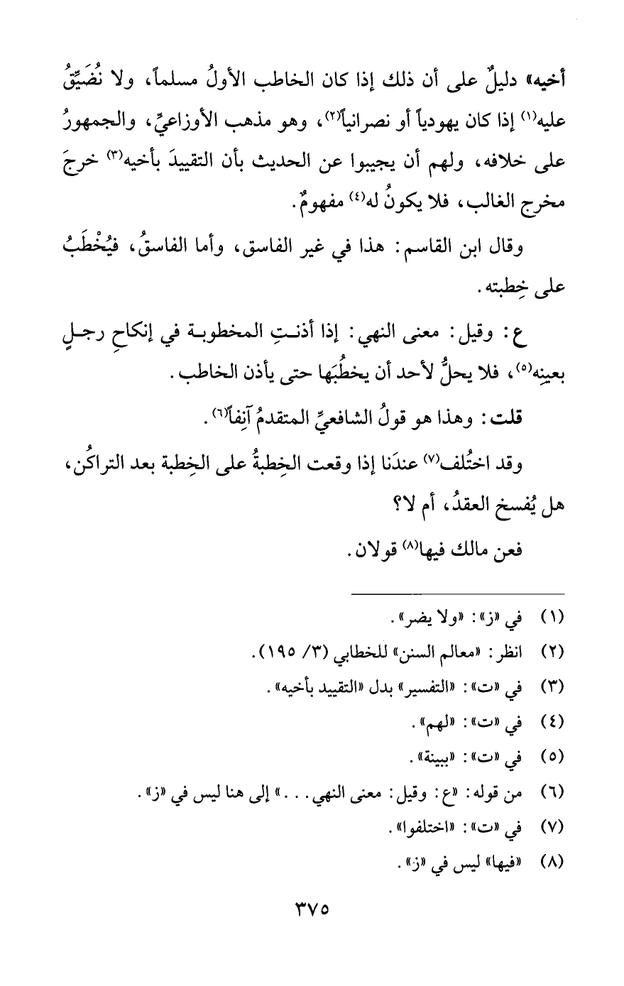 ع: وقيل: معنى النهي: إذا أذنتِ المخطوبة في إنكاحِ رجلٍ بعينِه (¬5)، فلا يحلُّ لأحد أن يخطُبَها حتَّى يأذن الخاطب.