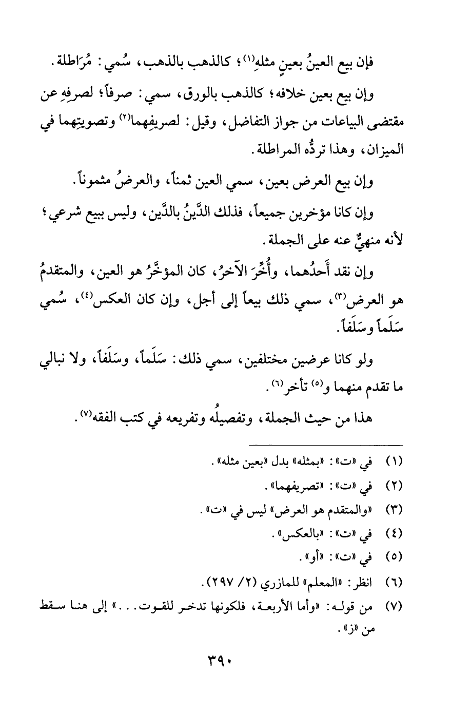 وإن نقد أَحدُهما، وأُخِّرَ الآخرُ، كان المؤخَّرُ هو العين، والمتقدمُ هو العرض (¬3)، سمي ذلك بيعًا إلى أجل، وإن كان العكس (¬4)، سُمي سَلَمًا وسَلَفًا.