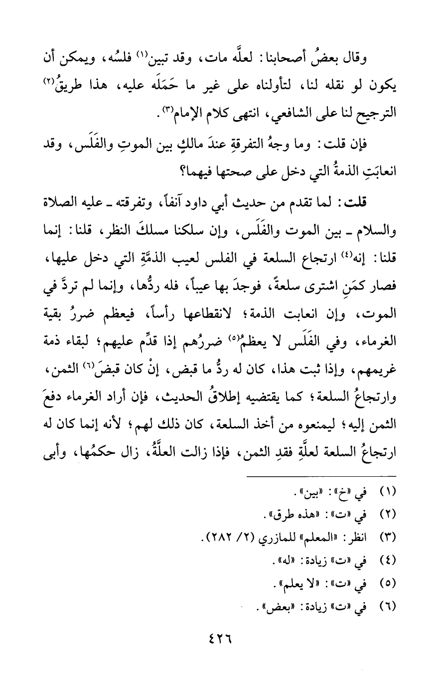وقال بعضُ أصحابنا: لعلَّه مات، وقد تبين (¬1) فلسُه، ويمكن أن يكون لو نقله لنا، لتأولناه على غير ما حَمَلَه عليه، هذا طريقُ (¬2) الترجيح لنا على الشافعي، انتهى كلام الإمام (¬3).