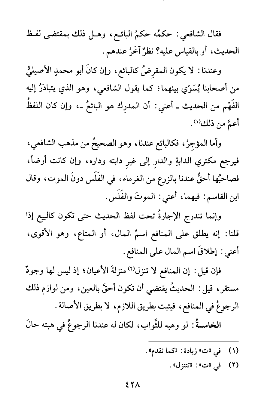 فإن قيل: إن المنافع لا تنزل (¬2) منزلةَ الأعيان؛ إذ ليس لها وجودٌ مستقر، قيل: الحديثُ يقتضي أن تكون أحقَّ بالعين، ومن لوازم ذلك الرجوعُ في المنافع، فيثبت بطريق اللازم، لا بطريق الأصالة.