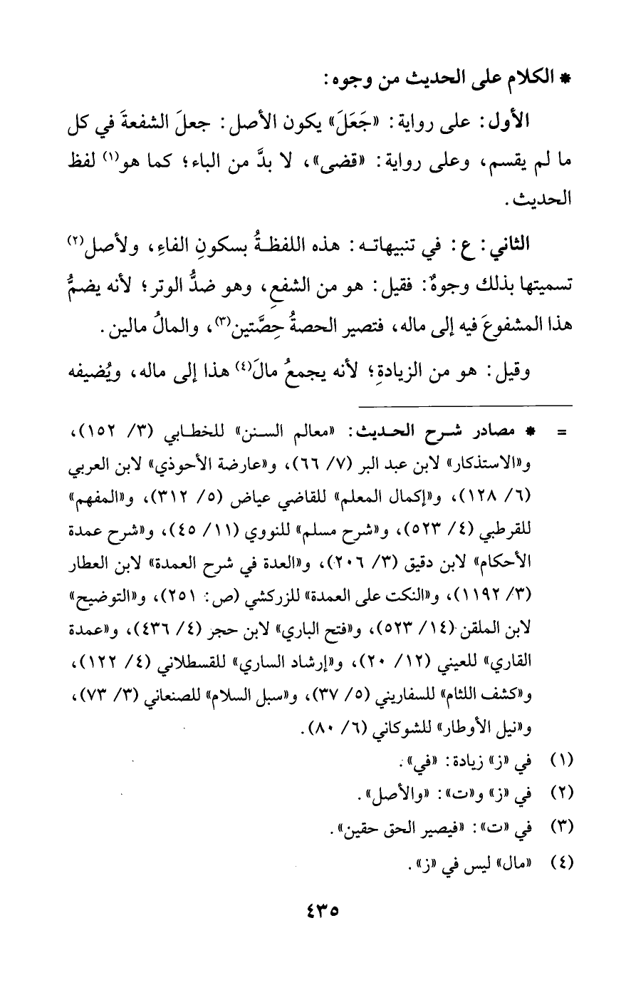 = * مصَادر شرح الحَدِيث: