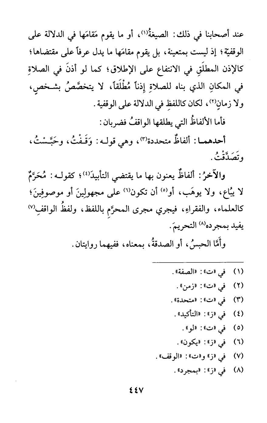 فأما الألفاظُ التي يطلقها الواقفُ فضربان: