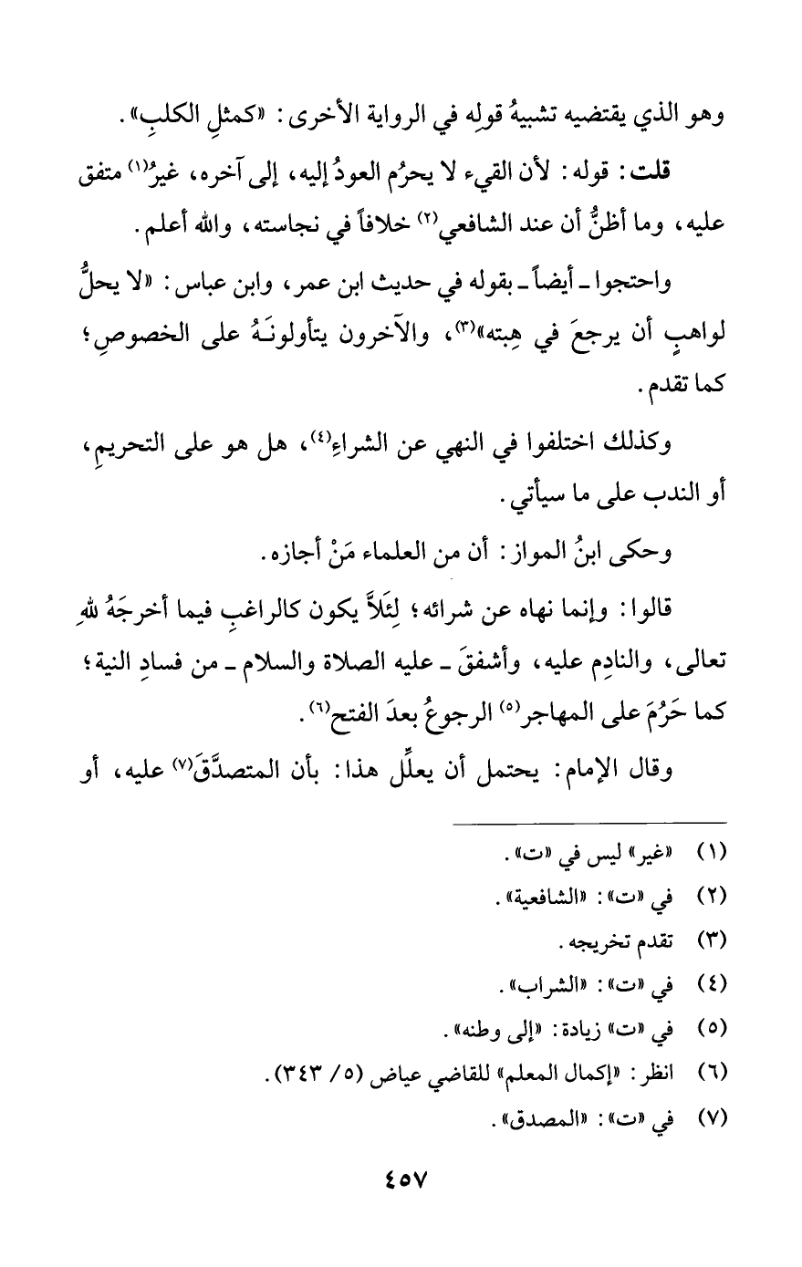(¬6) انظر: "إكمال المعلم" للقاضي عياض (5/ 343).