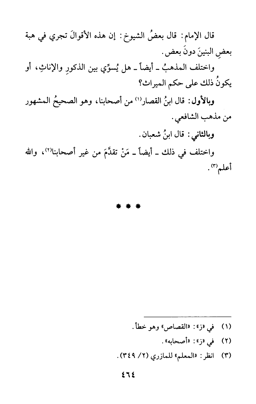 قال الإمام: قال بعضُ الشيوخ: إن هذه الأقوالَ تجري في هبة بعضِ البنينَ دونَ بعض.