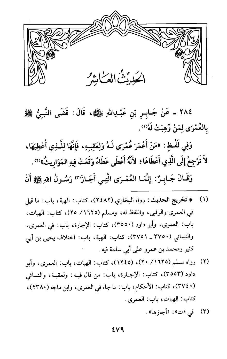 (¬2) رواه مسلم (1625/ 20)، (1245)، كتاب: الهبات، باب: العمرى، وأبو داود (3553)، كتاب: الإجارة، باب: من قال فيه: ولعقبة، والنسائي (3740)، كتاب: الأحكام، باب: ما جاء في العمرى، وابن ماجه (2380)، كتاب: الهبات، باب: العمرى.