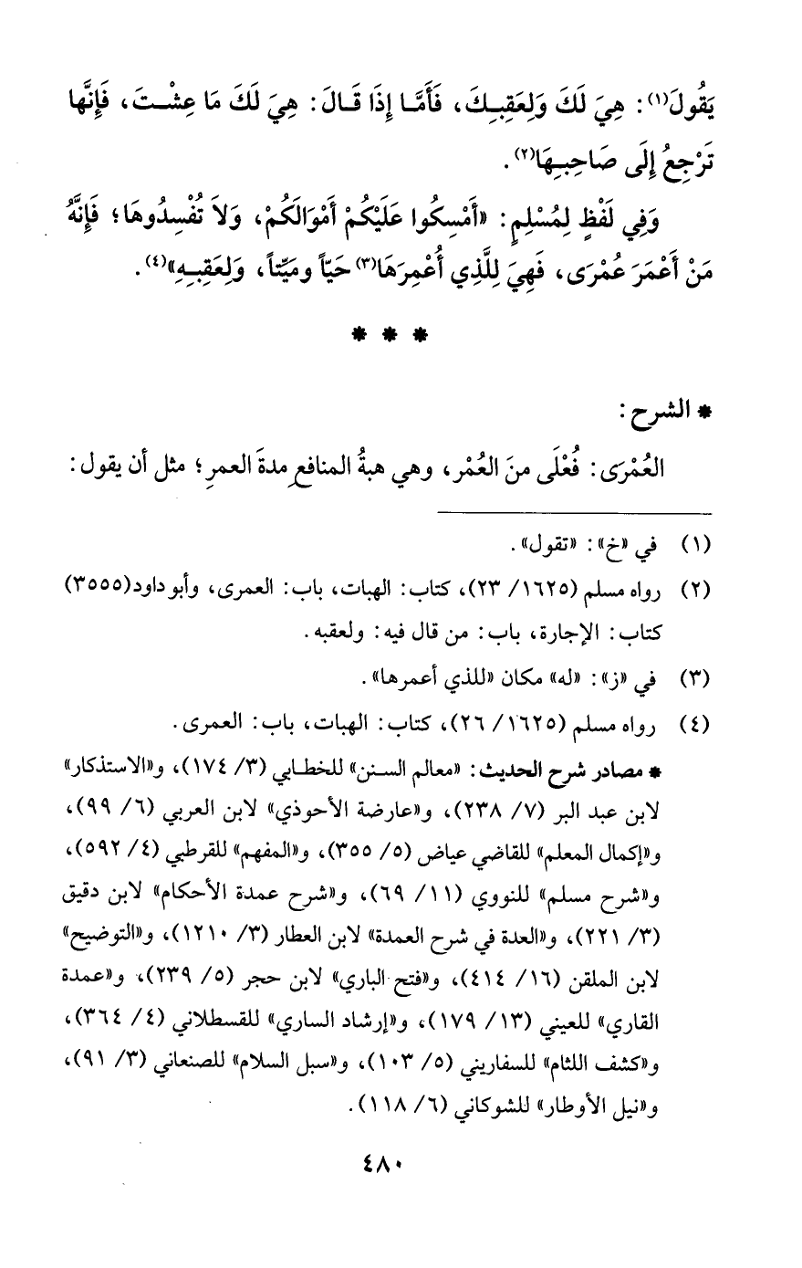 (¬2) رواه مسلم (1625/ 23)، كتاب: الهبات، باب: العمرى، وأبو داود (3555) كتاب: الإجارة، باب: من قال فيه: ولعقبه.