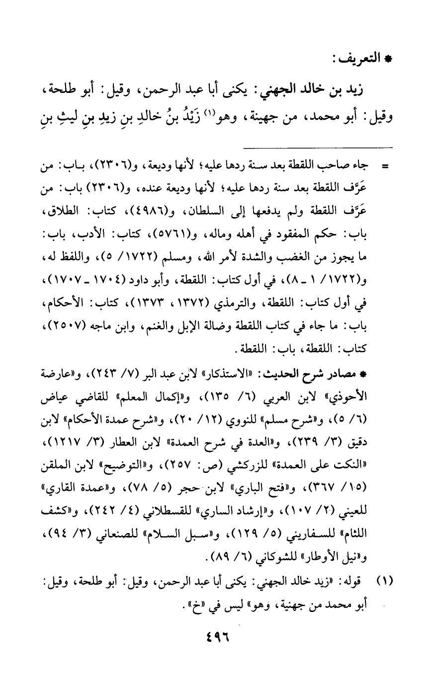 (¬1) قوله: "زيد خالد الجهني: يكنى أبا عبد الرحمن، وقيل: أبو طلحة، وقيل: أبو محمد من جهنية، وهو" ليس في "خ".