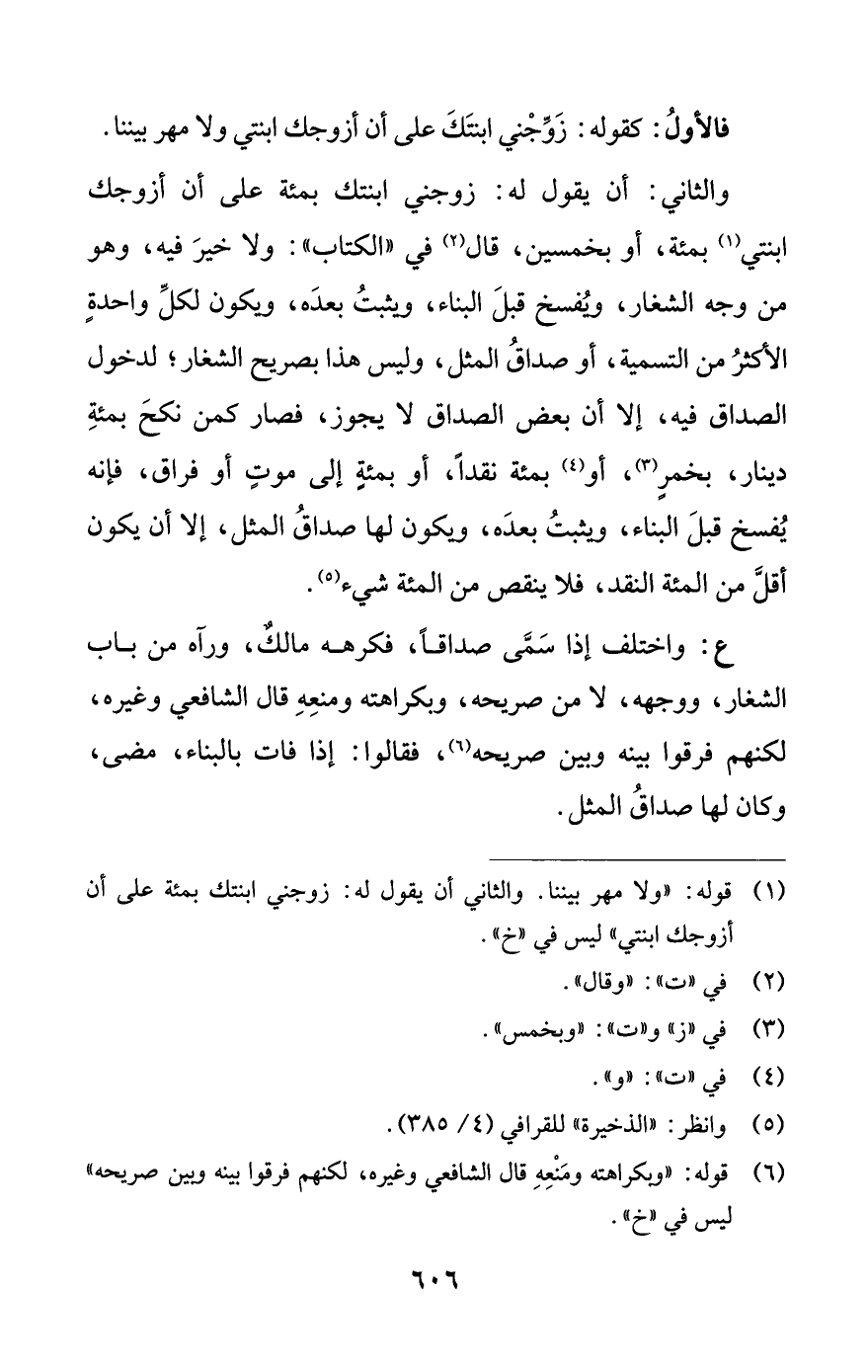 (¬1) قوله: "ولا مهر بيننا. والثاني أن يقول له: زوجني ابنتك بمئة على أن أزوجك ابنتي" ليس في "خ".