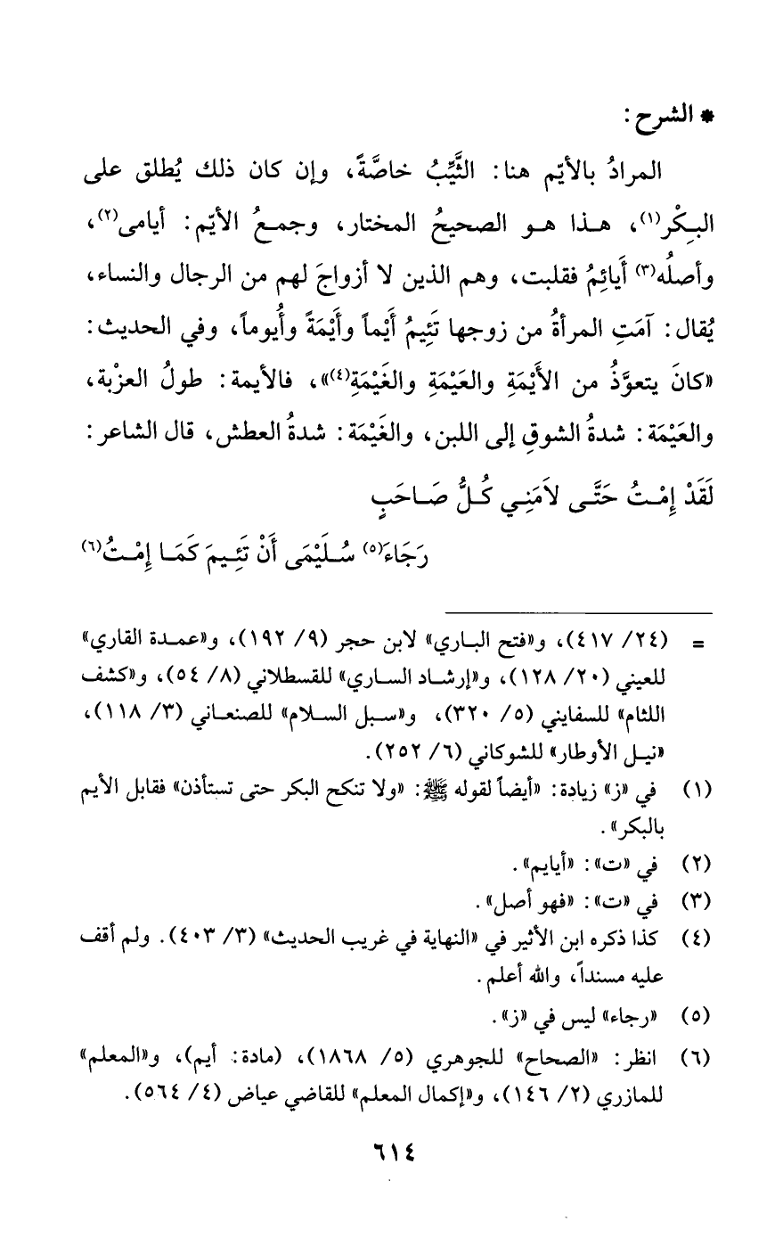 (¬6) انظر: "الصحاح" للجوهري (5/ 1868)، (مادة: أيم)، و"المعلم" للمازري (2/ 146)، و"إكمال المعلم" للقاضي عياض (4/ 564).