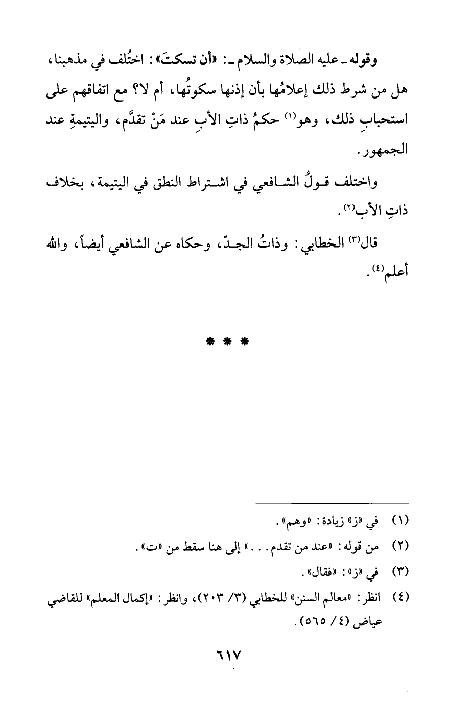 (¬4) انظر: "معالم السنن" للخطابي (3/ 203)، وانظر: "إكمال المعلم" للقاضي عياض (4/ 565).