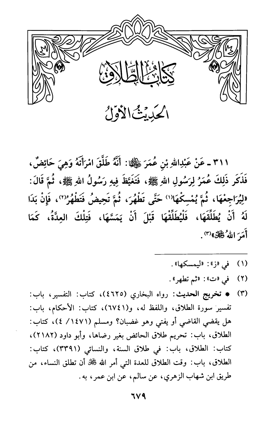 رواه البخاري (4625)، كتاب: التفسير، باب: تفسير سورة الطلاق، واللفظ له، و (6741)، كتاب: الأحكام، باب: هل يقضي القاضي أو يفتي وهو غضبان؟ ومسلم (1471/ 4)، كتاب: الطلاق، باب: تحريم طلاق الحائض بغير رضاها، وأبو داود (2182)، كتاب: الطلاق، باب: في طلاق السنة، والنسائي (3391)، كتاب: الطلاق، باب: وقت الطلاق للعدة التي أمر اللَّه عز وجل أن تطلق النساء، من طريق ابن شهاب الزهري، عن سالم، عن ابن عمر، به.