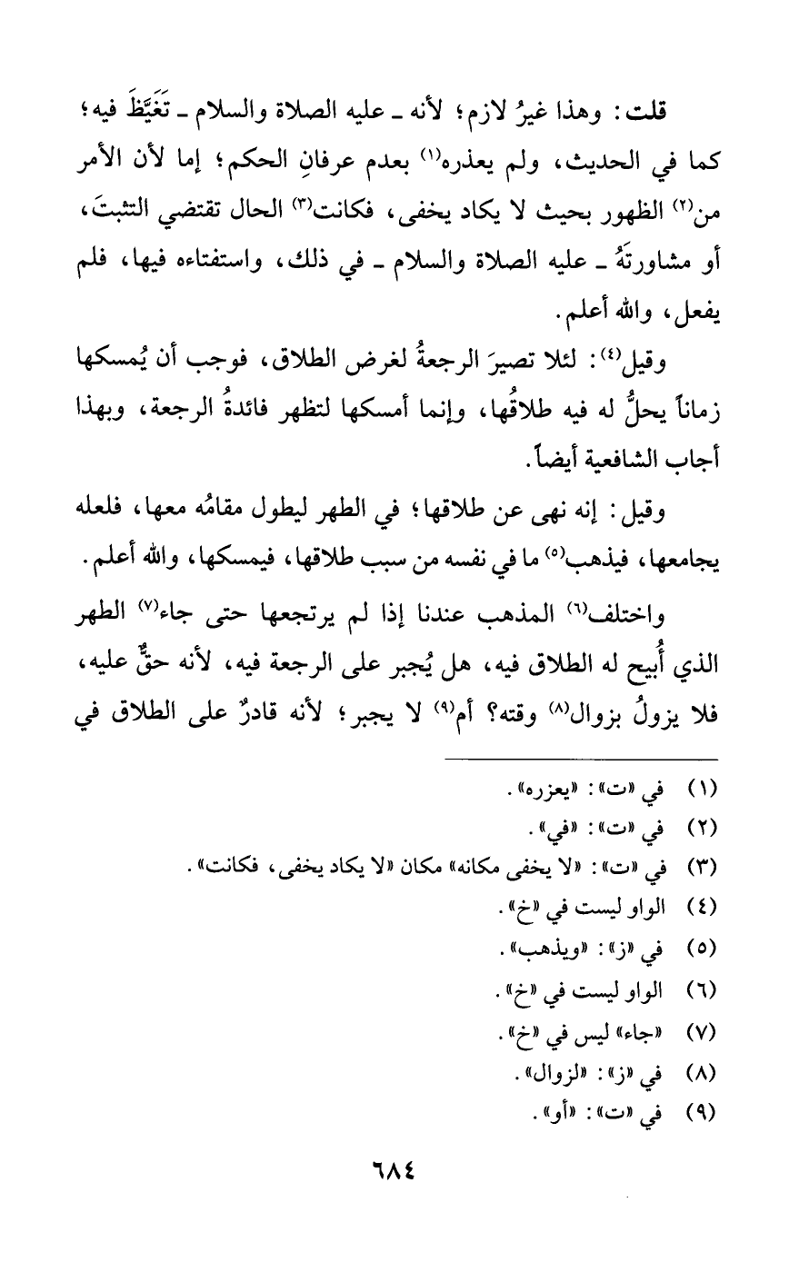 وقيل: إنه نهى عن طلاقها؛ في الطهر ليطول مقامُه معها، فلعله يجامعها، فيذهب (¬5) ما في نفسه من سبب طلاقها، فيمسكها، واللَّه أعلم.