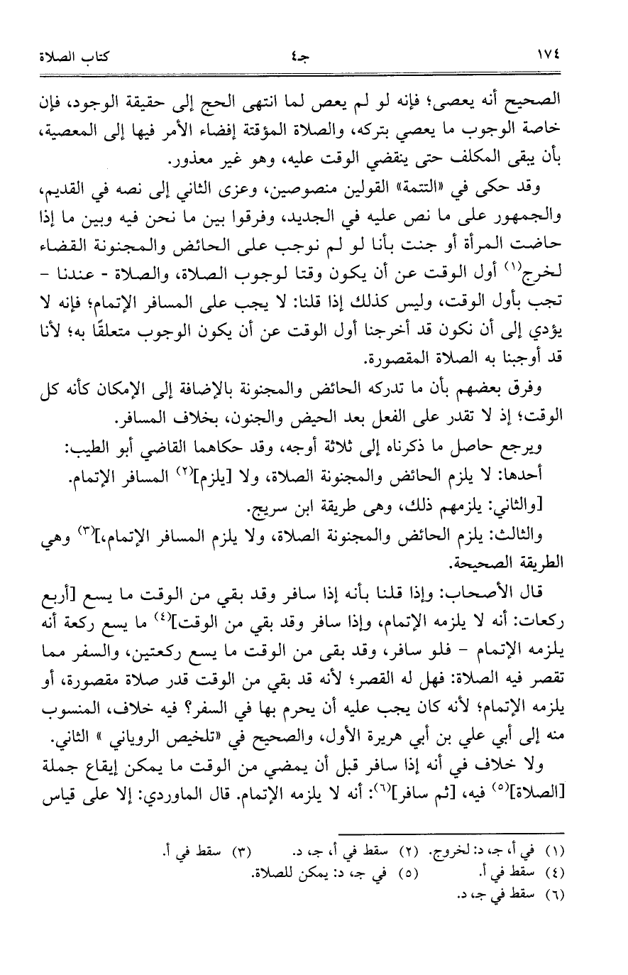 والثالث: يلزم الحائض والمجنونة الصلاة، ولا يلزم المسافر الإتمام،] وهي الطريقة الصحيحة.