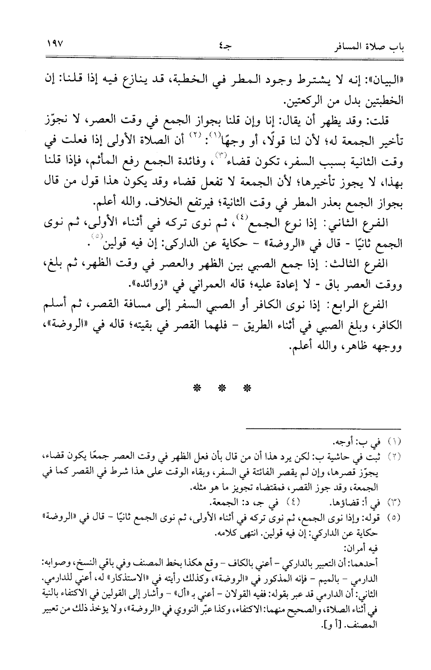 الفرع الرابع: إذا نوى الكافر أو الصبي السفر إلى مسافة القصر، ثم أسلم الكافر، وبلغ الصبي في أثناء الطريق- فلهما القصر في بقيته؛ قاله في "الروضة"، ووجهه ظاهر، والله أعلم.