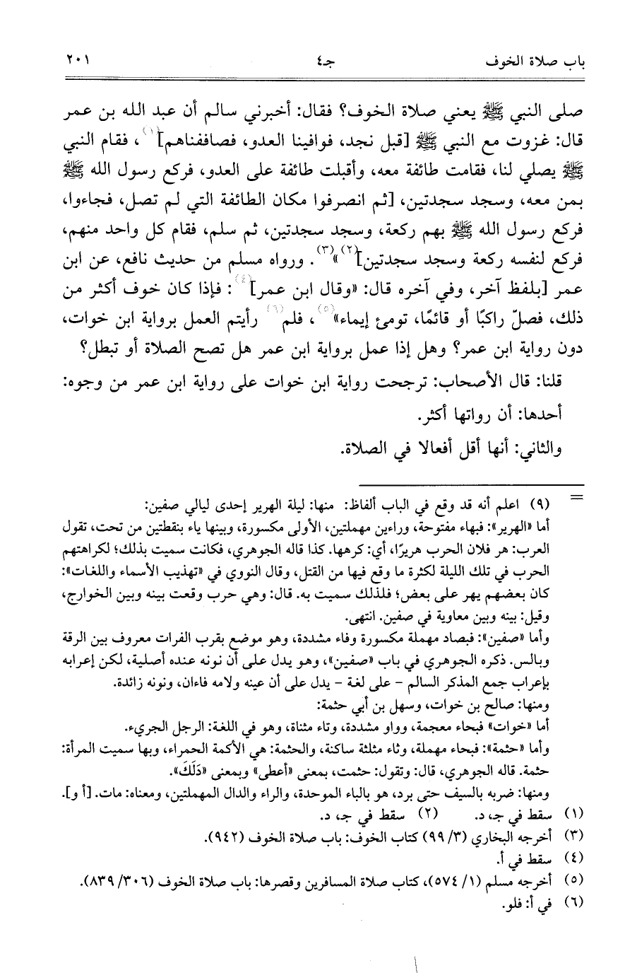 قلنا: قال الأصحاب: ترجحت رواية ابن خوات على رواية ابن عمر من وجوه: